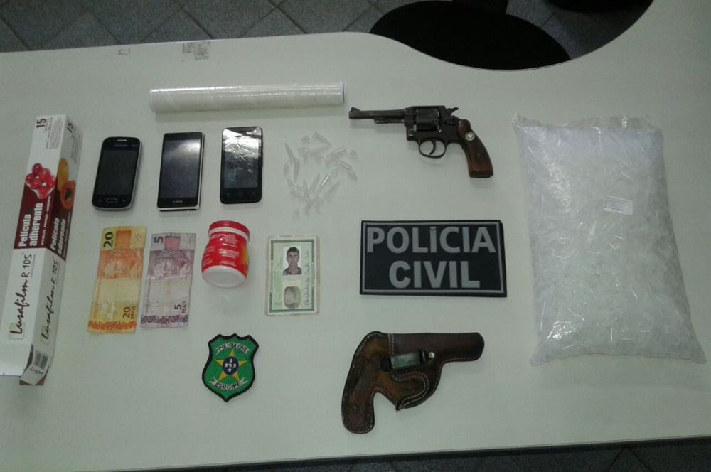 De acordo com a Secretaria de Segurança Pública (SsP), os oliciais Civis flagraram o proprietário de casa, identificado inicialmente como Roberlandio, de 26 anos, preparando uma porção de cocaína. As buscas continuaram e os policiais encontraram dinheiro, uma arma de fogo calibre 32 e mais de mil pinos prontos para armazenamento de cocaína.