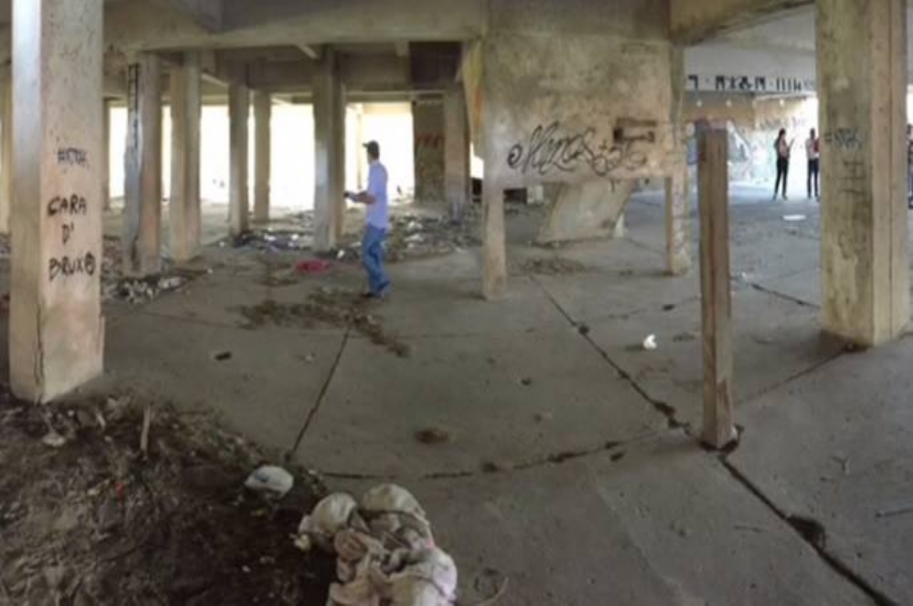 | Polícia durante trabalho de perícia na zona interna do edifício inacabado (Foto: Reprodução/Vídeo SSP-SE) |