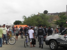 Equipes da Polícia de Choque realizam durante toda a manhã deste sábado, 15, uma operação de rotina na Feira das Trocas, localizada no bairro América. Polícia realiza operação de rotina na feira das trocas(Foto: Portal Infonet)