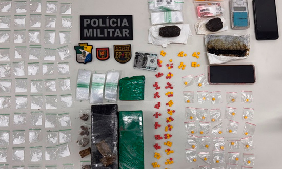 Ao todo, foram apreendidos aproximadamente 1,9 kg de substância análoga à maconha, 290 gramas de substância análoga à haxixe, 30 gramas de substância análoga à cocaína, distribuídas em 59 papelotes, além de 196 comprimidos sintéticos, uma balança de precisão, dois aparelhos celulares e documentos pessoais diversos.