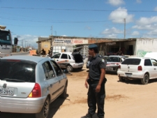 impedir a entrada de entorpecentes e armamentos na área. Tenente Alanderson revista veículos