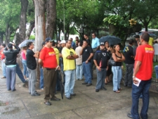 Os policias civis estão paralisados hoje, 22, e amanhã para reivindicar pressa no envio da contra-proposta de negociações à Assembléia Legislativa. A contra-proposta foi elaborada pelo secretário de Segurança Pública, Kércio Pinto, e enviada ao governador para sua aprovação, mas até agora o governo não sinalizou com o envio aos deputados. Apesar das negociações avançadas, a possibilidade de greve não é descartada pelos policias. Policiais concentrados na praça Tobias Barreto