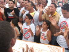 Os membros da Associação Beneficente de Servidores Militares de Sergipe (ABSM-SE), protestaram nessa segunda-feira, 31, em ‘comemoração’ aos três anos de distorções nos salarios da categoria. Em tom de bom humor os policiais fizeram um imenso bolo de aniversário e puseram um mini-trio em frente à Assembléia Legislativa. O Governo do Estado já sinalizou que irá analisar a proposta do fim das distorções em abril. Capitão Samuel Alves, da Associação Beneficente dos Servidores Militares