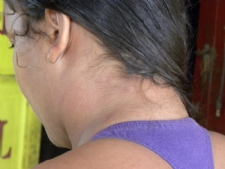 Mulher foi atingida com sombreiro na região da nuca