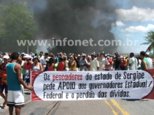 Os cerca de 800 pescadores dos Estados de Sergipe e Alagoas que fizeram um protesto na manhã desta quarta-feira, 14 na ponte de Propriá, não se conformam com o atraso na liberação do seguro-defeso por conta do Ministério do Trabalho. Eles estão sem dinheiro há mais de dois meses, o que os levou a fechar a ponte sobre o rio São Francisco, queimando pneus e gritando palavras de ordem por uma hora. A liberação só foi possível devido à presença de policiais rodoviários federais.