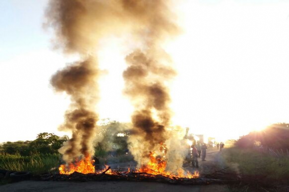 | Populares atearam fogo a pneus e montaram uma barricada (Foto: reprodução/redes sociais) |