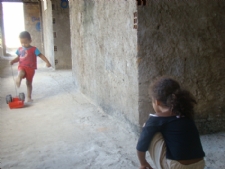acaba dando um jeitinho. Para tentar amenizar essa situação, o Motu já está providenciando mais um banheiro e um espaço comunitário para banho. Crianças brincam indeferentes ao perigo e sob o olhar atento das mães