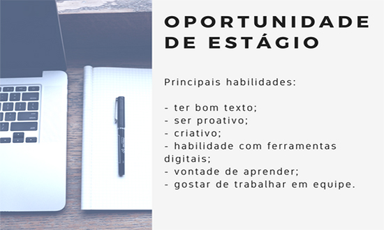 O estagiário receberá remuneração (meio piso de jornalismo) e vale-transporte. A vaga é para o turno da tarde. Haverá uma seleção de currículos e, posteriormente, os pré-selecionados passarão por entrevista e avaliação.