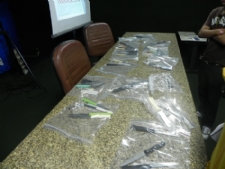 A grande quantidade de facas e objetos cortantes apreendidos chamou a atenção. Foram 73 objetos que foram expostos durante a coletiva à imprensa. “A população colaborou e informava sobre as ocorrências, muitas