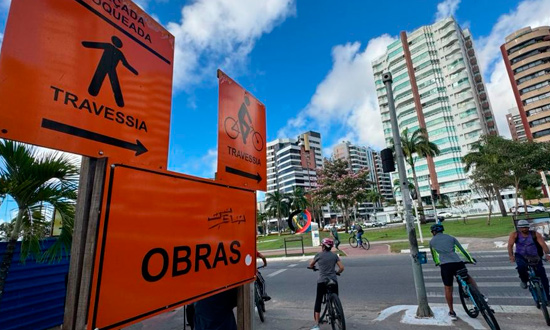 Com o avanço da obra de duplicação da ponte Godofredo Diniz, que resultou na instalação de tapumes e na interdição em trecho do calçadão da 13 de Julho, na avenida Beira Mar, via que liga os bairros 13 de Julho e Coroa do Meio, a Prefeitura de Aracaju, por meio da Superintendência Municipal de Transportes e Trânsito (SMTT), orienta sobre o deslocamento de ciclistas e corredores na região durante o período de intervenção. O local conta com sinalização específica indicando os pontos seguros para travessia e os trajetos adequados para circulação.