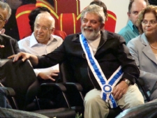 longos discursos do ex-presidente cubano, Fidel Castro. O presidente ressaltou as obras do Programa de Aceleração do Crescimento (PAC) que serão executadas em Aracaju e aproveitou para falar sobre alguns problemas políticos que vem enfrentando. Edvaldo, Déda, familiares do Jornalista Carvalho Déda e presidente dividem espaço ao lado da estátua do homenageado