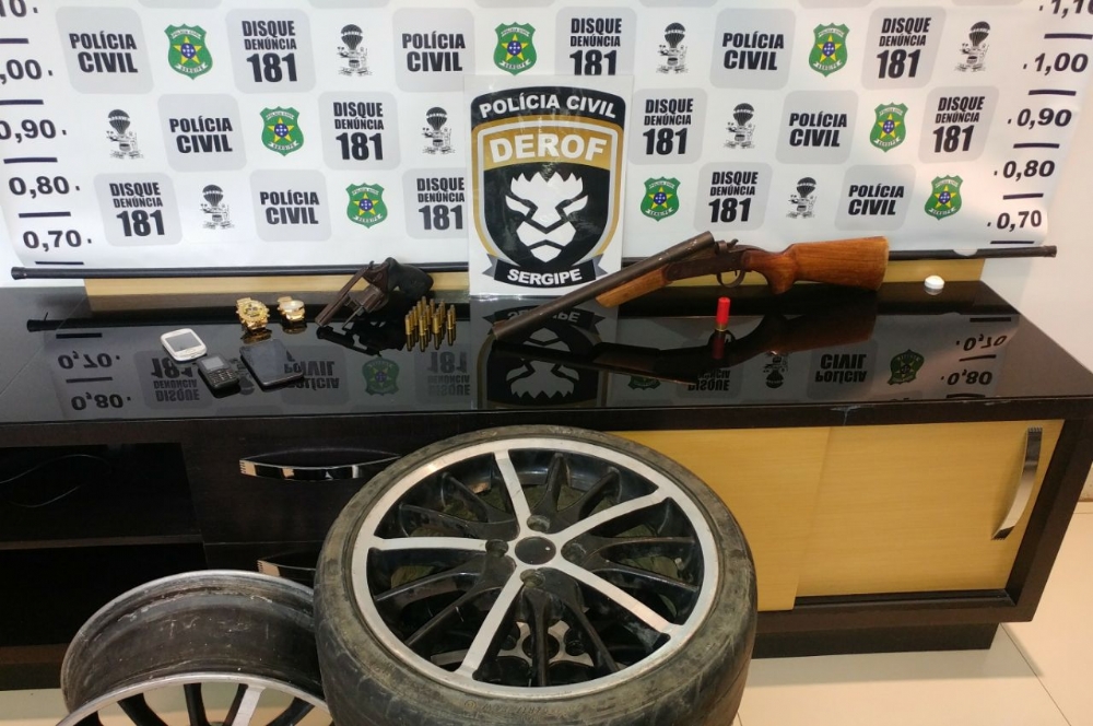 As prisões aconteceram em um imóvel no conjunto Jardim Centenário, zona oeste de Aracaju. Com os acusados foram apreendidos um veículo Gol, de cor azul e placa HZO-6009/SE – utilizado na ação criminosa -, dois relógios, três aparelhos celulares, um revólver calibre 38 com 15 munições e uma escopeta cano curto calibre 12 municiada.