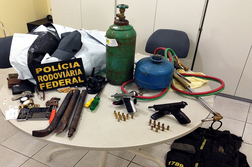Segundo a PRF, os indivíduos estavam em um veículo Fiesta com placa do estado da Bahia. Durante revista do veículo, os policiais encontraram três malas de roupas, um maçarico, um cilindro de oxigênio, luvas, botijão de gás e produtos portáteis.