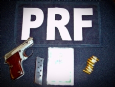 Na manhã de sábado, os agentes da PRF prenderam Rodrigo da Conceição Santos, de 19 anos, que portava ilegalmente uma pistola Taurus calibre 6.5mm com oito munições. Ele foi preso e a ocorrência encaminhada à Delegacia da Policia Civil em Estancia.