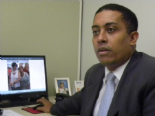 Com os olhos marejados e a voz embaçada o promotor Fausto Valois falou a equipe do Portal Infonet sobre o racismo sofrido pela mãe, a Juíza Luislinda Valois Santos. Filho único e pai de dois filhos, o promotor relata que um site nacional de grande audiência divulgou uma foto em que a juíza é identificada como camareira. Fausto se emociona e exibe na tela do computador foto que foi alvo de preconceito / Foto: Portal Infonet