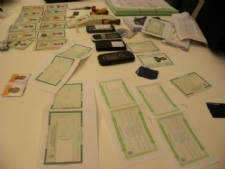 Com os acusados foram apreendidos vários objetos utilizados para falsificar documentos de identificação e comprovantes de residência, além de celulares, computadores portáteis, carimbos e vasta documentação.