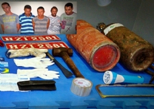 A informação de policiais que acompanham o caso, no entanto, é que pelo modo de operação com que foi realizado o arrombamento nos caixas e o material encontrado com o bando, é provável que o grupo tenha participação no crime. Outra prova que levou à suspeita do grupo foi uma nota fiscal da compra de um maçarico Segundo a polícia, se for comprovada a participação dos presos nos arrombamentos, a quadrilha deverá ser trazida para Sergipe. Os presos foram identificados como Sandro Gomes Botelho de Oliveira, de 35, que seria natural de São Paulo; João do Livramento Barbosa Serra, de 29 anos, natural do Maranhão e os sergipanos Márcio Greick Silva, de 33; Fernando Santos da Piedade, de 22, e Ednaldo Alves Santos, de 38 anos. De acordo com a polícia, as investigações estão em sigilo, já que novas prisões podem ser efetuadas. Por Kátia Susanna