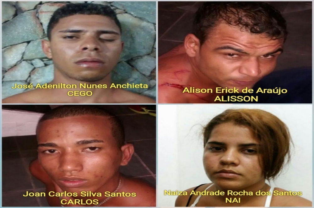 Agentes de polícia judiciária da Delegacia Regional de Estância e membros da Guarda Municipal da cidade prenderam três homens, uma mulher e apreenderam um adolescente responsáveis pela série de roubos a mão armada cometidos no início da tarde dessa terça-feira, 10. Foram presos José Adenilton Nunes Anchieta, conhecido como "Cego", 23 anos; Alison Erick de Araújo, 28; Joan Carlos Silva Santos, 21; e Naiza Andrade Rocha dos Santos, a "Nai", 22. Também foi apreendido um adolescente de 17 anos.