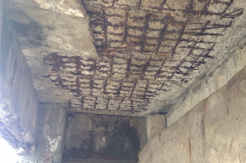 | Placas de reboco se soltaram e ferrugem também fica visível |