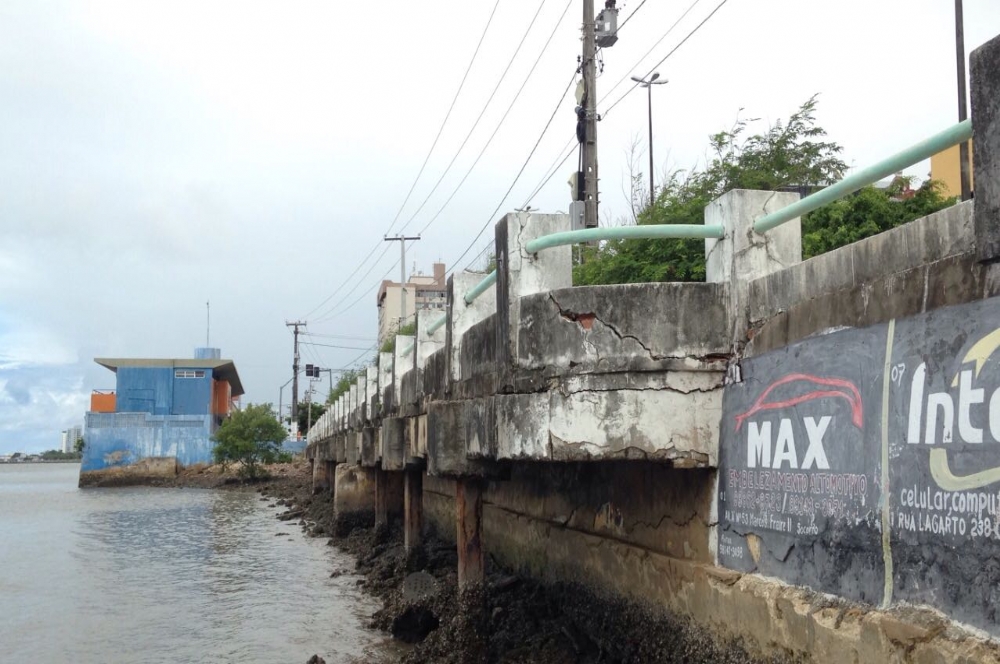 O trecho também fica às margens do Rio Sergipe, portanto, as vigas de sustentação da calçada recebem o impacto direto da maré cheia. Nas fotos retiradas pela nossa reportagem, dá para perceber a ferrugem e as rachaduras na parte inferior das estruturas. A parte de reboco, inclusive, já começa a se soltar.