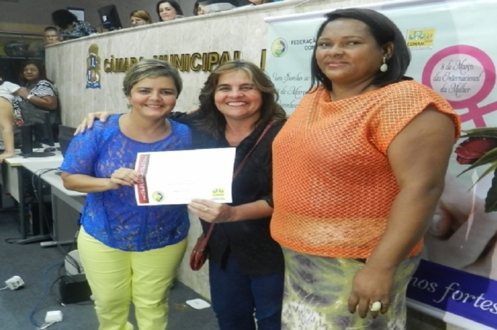 | Cássia Santana (no centro) recebe o reconhecimento pelo Dia Internacional da Mulher (Fotos: Portal Infonet) |