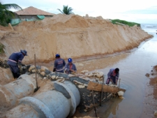 causar risco do asfalto ceder. “Tem alguns terrenos que com uma chuva mais forte podem forçar o asfalto como neste caso em frente ao condomínio Praias do Sul. Mas o Ministério Público Federal proibiu de fazer a obra de escoamento”, disse.