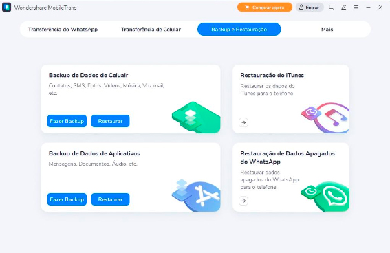 E dentre as principais ferramentas para recuperar arquivos deletados do WhatsApp disponíveis atualmente, a melhor é a MobileTrans. Com esse app, você pode fazer isso e muito mais com seus arquivos do WhatsApp.
