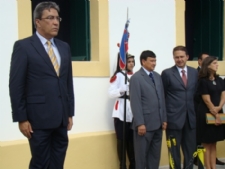 das bandeiras do Brasil, Sergipe e São Cristóvão, além de desfile das tropas da Polícia Militar. Marcaram presença, como convidados ilustres, os governadores do Piauí e de Pernambuco, José Wellington Dias e Eduardo Campos, ambos serão homenageados durante o dia com a Medalha do Mérito Aperipê.      Tropas da PM desfilaram nas ruas de São Cristóvão