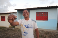 Morador beneficiado pelo programa exibe orgulhoso a chave da nova casa