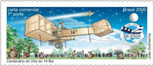 Em comemoração ao centenário do vôo 14 Bis foram produzidos 2.040.000 selos, com distribuição nas agências de todo o país. Na imagem do selo, o artista João Guilherme retrata o momento em que se materializa o sonho de Santos Dumont, quando o seu projeto, sob a admiração de observadores, realiza o seu vôo histórico.