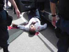 A demora no atendimento do motorista do desembargador Luiz Mendonça vem repercutindo na cidade. O desespero tomou conta da população que estava presenciando o motorista respirando, mexendo a perna e ansiando, sem que o carro do Serviço Móvel de Urgência e Emergência (Samu) chegasse. Após esperar por vários minutos, os policiais resolveram socorrer o motorista (Fotos: Portal Infonet)