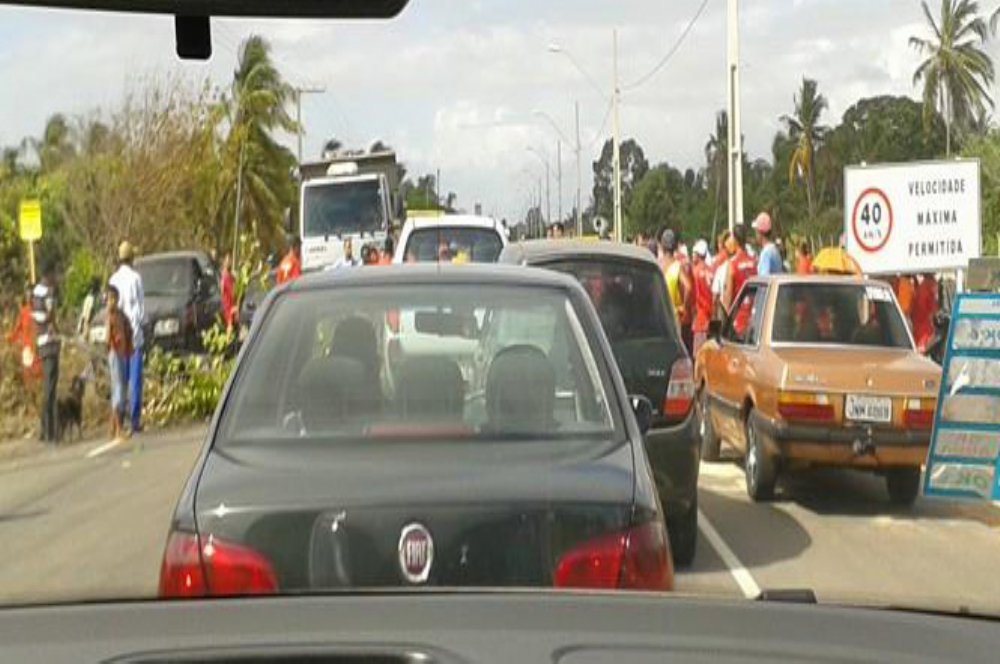 Integrantes da União Nacional pela Moradia Popular, que residem às margens da rodovia SE-100 nas proximidades da Praia do Jatobá, município de Barra dos Coqueiros, fizeram um ato na manhã desta segunda-feira, 27. Eles fecharam o acesso em protesto aos acidentes registrados no local em virtude da alta velocidade.