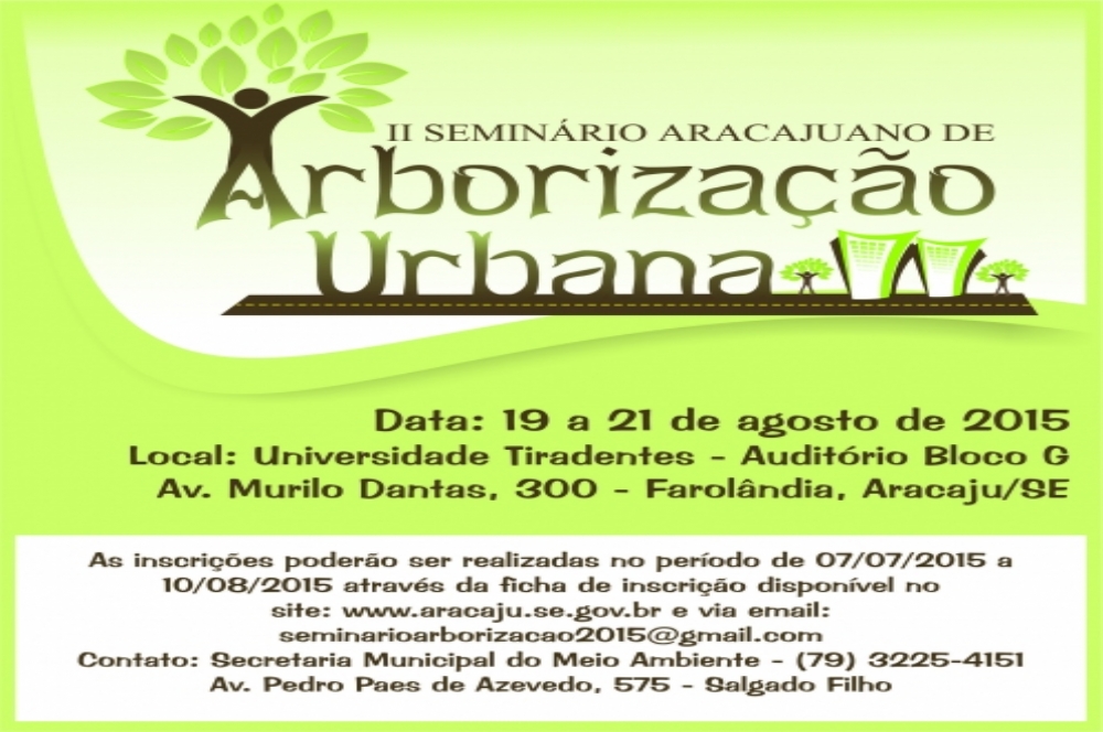 Nos dias 19, 20 e 21 de agosto, a Secretaria Municipal do Meio Ambiente (Sema), realizará na Universidade Tiradentes (Unit) Campus Farolândia, o II Seminário de Arborização Urbana. O evento tem como principal objetivo discutir temáticas para a requalificação da arborização.
