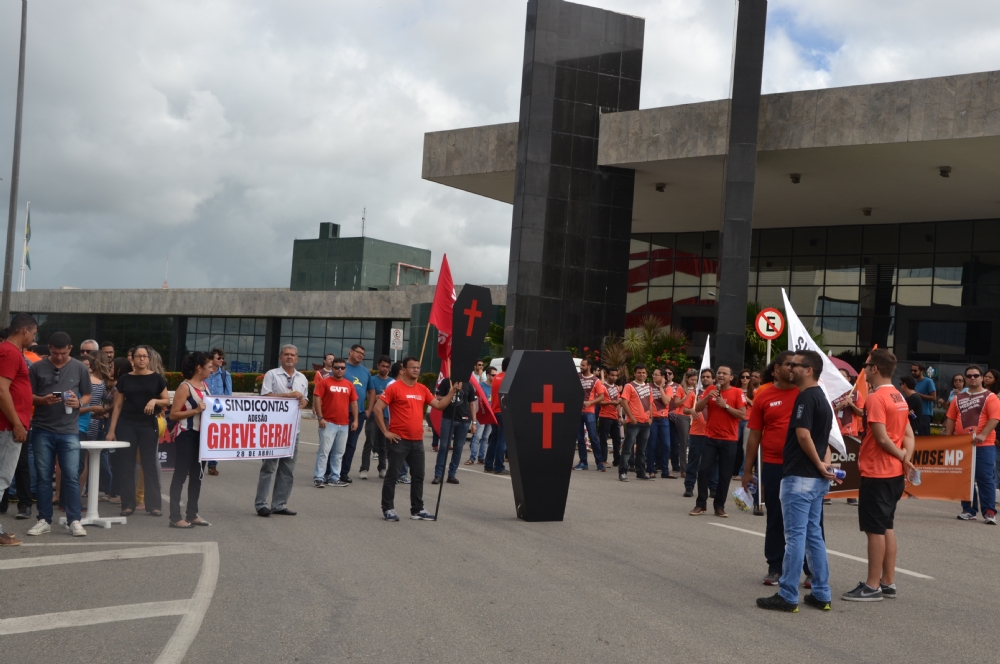 No ato unificado, os manifestantes utilizaram caixões e cruzes, simbolizando a revolta da classe trabalhadora contra as propostas defendidas pelo Governo e pela maioria dos deputados federais. “Um retrocesso aos direitos sociais, político e econômico, com a retirada de direitos conquistados ao longo dos anos pela classe trabalhadora brasileira”, ressaltou Gleberton Santos, dirigente do Sindicato dos Servidores do Ministério Público Estadual.
