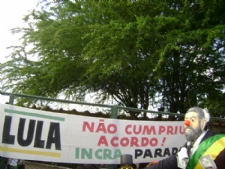Em greve há 60 dias, os servidores do Instituto Nacional de Colonização e Reforma Agrária (Incra), com caras pintadas de palhaço, percorreram na tarde desta sexta-feira, 20, diversas ruas do centro da capital. Munidos de faixas com frases de protesto, cartazes, um boneco do presidente Lula e um mini-trio, os manifestantes decidiram ir às ruas como uma forma de alertar a população sobre a situação da categoria.Os manifestantes saíram da sede do órgão federal até a sede do Partido dos Trabalhadores, na avenida Ivo do Prado.