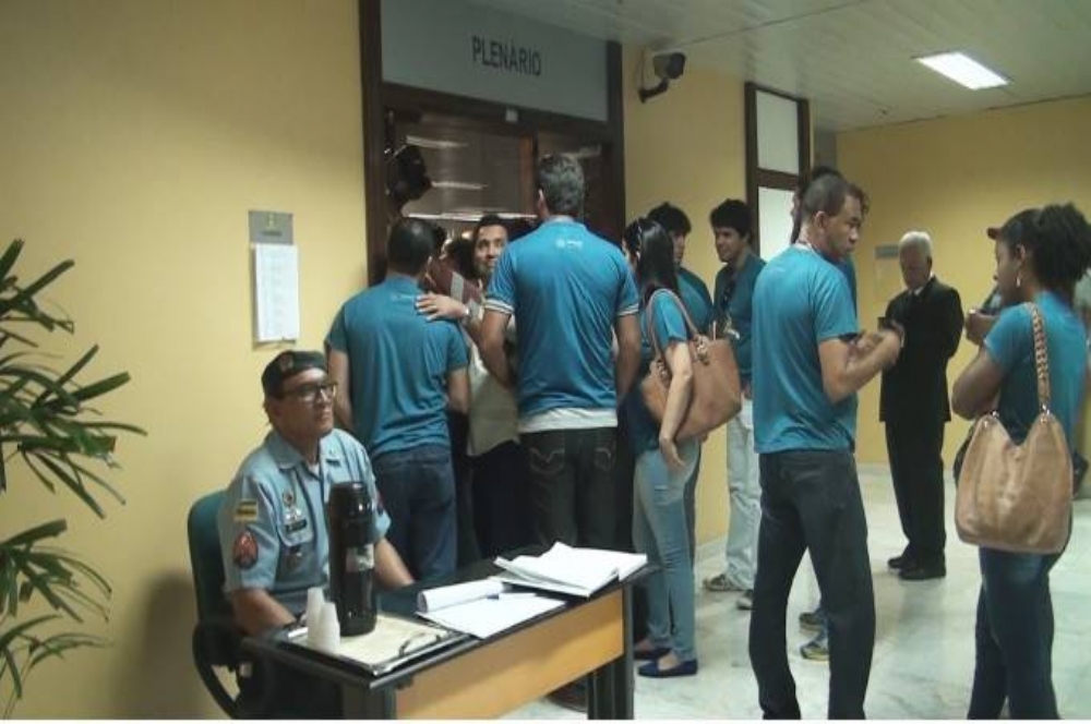 | Membros do Sindijus acompanham paralisação na sede do Tribunal de Justiça / (Foto: Portal Infonet) |