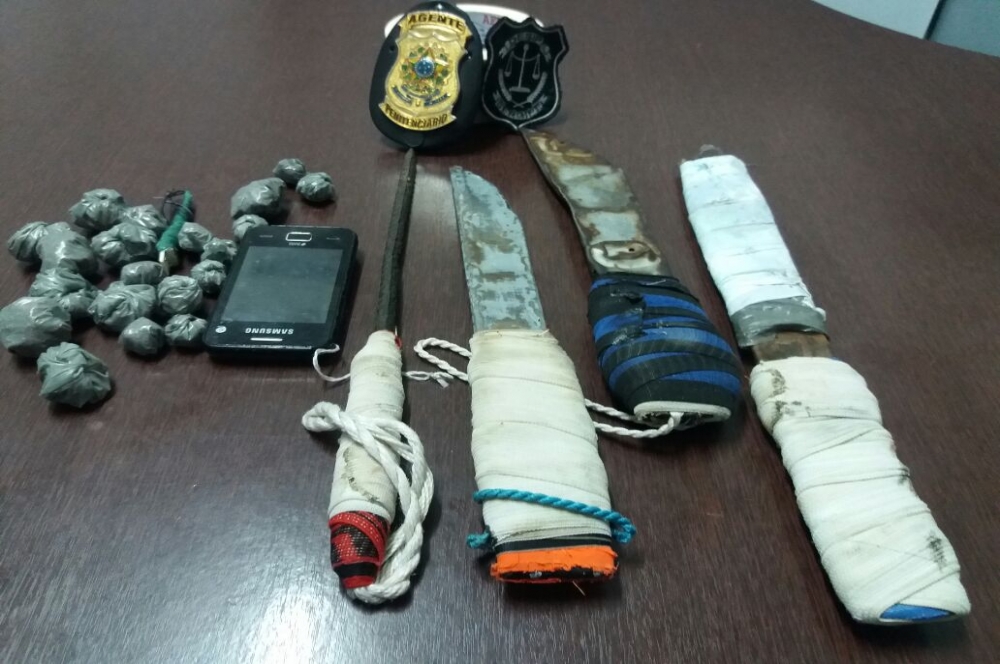 | Durante a operação foram encontrados quatro chunchos (armas artesanais), um celular e uma pequena quantidade de maconha |