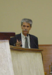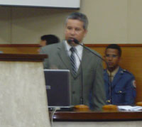 Em seguida falou Luiz Carlos Fontes, secretário do Comitê da Bacia Hidrográfica do Rio São Francisco. Ele reafirmou mais uma vez a satisfação de estar ali e agradeceu à Assembléia Legislativa por estar promovendo aquele espaço de discussão. Segundo Luiz Carlos, a posição de Sergipe é diferenciada, tal qual a de Alagoas, pois os dois Estados estão situados na foz do São Francisco, que é considerada a síntese do rio. O secretário lembrou ainda o histórico de lutas que o Comitê vem travando desde o Governo de Fernando Henrique Cardoso, mantendo-se sempre aberto a negociação e a discussão sobre o assunto.