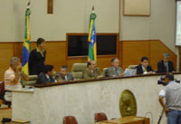Desde às 9 horas de hoje, está acontecendo na Assembléia Legislativa do Estado de Sergipe, uma sessão especial para discutir a transposição do Rio São Francisco. Resultado de uma auto-convocação, solicitada pelo deputado estadual Gilmar Carvalho e homologada pelo presidente da casa, Antônio Passos, a mesma não será remunerada. No plenário estão presentes vereadores, representantes de Organizações Não Governamentais (ONGs), de Sindicatos, do Banco do Brasil, dos Correios, do Movimento Estudantil, dentre outros. Contudo, uma ausência foi sentida: a dos senadores sergipanos.