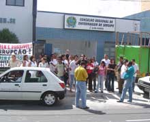 Segundo a entidade, o ato também tem como objetivo apoiar, publicamente, a operação deflagrada pela Polícia Federal na semana passada e que já resultou na prisão de 15 pessoas acusadas de fraudar o Conselho de Enfermagem numa quantia estimada em R$ 100 milhões. Entre os presos estão o presidente do Cofen, Gilberto Linhares, e a esposa dele, Hortência Linhares, presidente do Coren de Sergipe. Para Augusto Couto, componente da direção do Sintasa, a necessidade da escolha de novos membros para comandar os órgãos fiscalizadores da classe é urgente. O Sintasa também estará pedindo à Justiça a revisão das anuidades pagas, nas gestões de Gilberto e Hortência Linhares, ao Cofen. “Nós temos conhecimento de que ocorrem irregularidades desde 1991. Então vamos solicitar aos Ministérios Públicos do Estado e Federal que façam uma intervenção nos dois órgãos e realizem uma completa varredura nas contas dos mesmos. O Sintasa não quer tomar o Coren, queremos apenas que se faça uma nova eleição, que se coloque nos cargos pessoas competentes, pessoas dignas que respeitem os profissionais”, ponderou a sindicalista Beatriz Barbosa, que integra a direção do Sintasa.