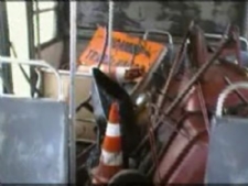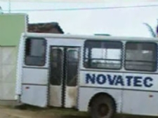 Equipamentos são carregados dentro dos ônibus unto com trabalhadores (Fotos: Reprodução)