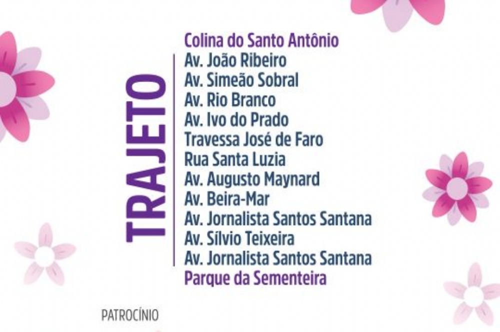 Às 8h, os ciclistas seguirão pelas avenidas João Ribeiro, Simeão Sobral, Rio Branco, Ivo do Prado, Travessa José de Faro, rua Santa Luzia, av. Augusto Maynard, Beira-Mar, Jornalista Santos Santana, Sílvio Teixeira, Jornalista Santos Santana, até o Parque da Sementeira.