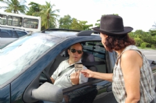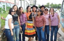 Equipe usa trajes juninos para chamar a atenção dos condutores