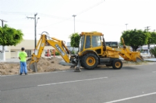 A urbanização dos canteiros centrais e a construção da ciclovia nos conjuntos Marcos Freire I, II e Fernando Collor, em Nossa Senhora do Socorro, iniciaram na última sexta-feira, dia 15. A equipe responsável pela obra já se encontra na altura do trevo do conjunto João Alves. Inicialmente, a máquina retro-escavadeira trabalha na escavação do canteiro para fazer o nivelamento do terreno. Obras estão na fase inicial, com nivelamento do terreno (Foto: Ascom/Socorro)