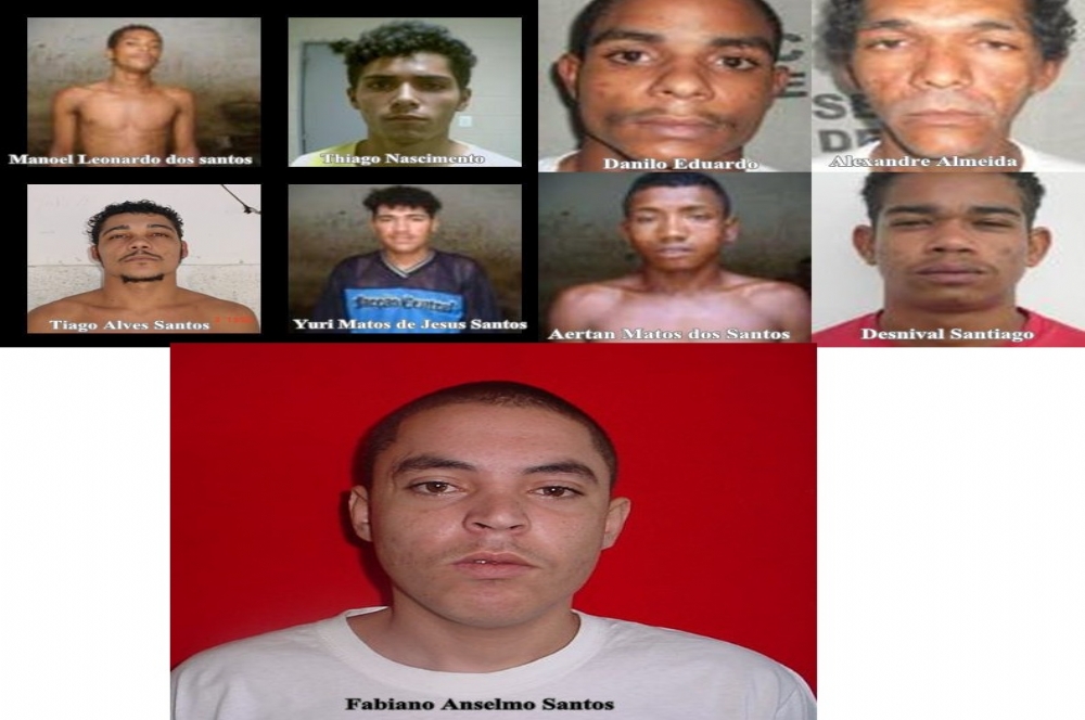 Continuam foragidos os acusados Aerton Matos dos Santos, preso por roubo majorado; Alexandre Almeida Mendes, preso por furto tentado; Danilo Eduardo do Nascimento, detido por tráfico de drogas; Desnival Santiago Santos, preso por roubo majorado; Elitanio Francisco da Silva, roubo majorado; Yuri Matos de Jesus Santos, tráfico de droga se porte ilegal de arma de fogo; Tiago Alves dos Santos, homicídio qualificado; Thiago Nascimento dos Santos, tráfico de drogas, e Fabiano Anselmo Santos, furto qualificado.