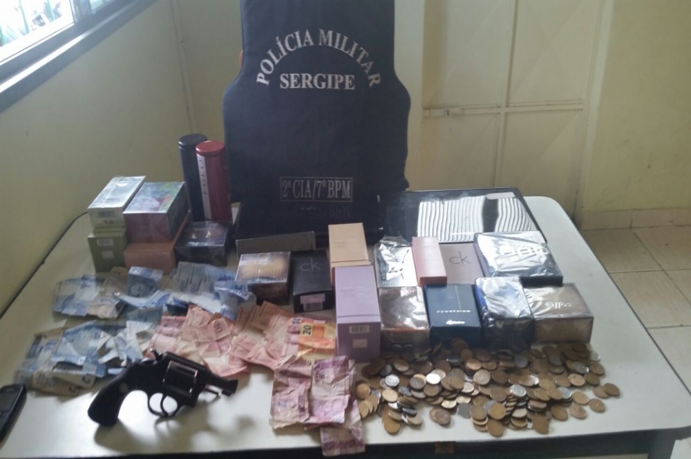 Com o casal, a polícia apreendeu cerca de R$ 700 em espécie, muitos perfumes, que supostamente teria sido roubados durante as duas últimas ações em uma farmácia e um ponto bancário em Ribeira do Amparo e também um revólver de calibre 38, que estaria com George. A motocicleta usada na fuga estava sem placa, também foi apreendida e a polícia continua investigando a procedência.