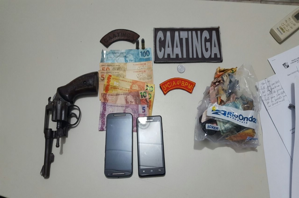 Com os suspeitos, a polícia encontrou mais de R$200 em espécie, três celulares, uma arma de fogo e apreendeu a moto dos suspeitos.