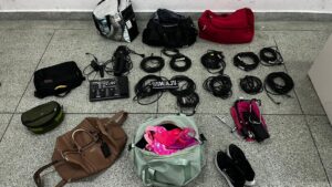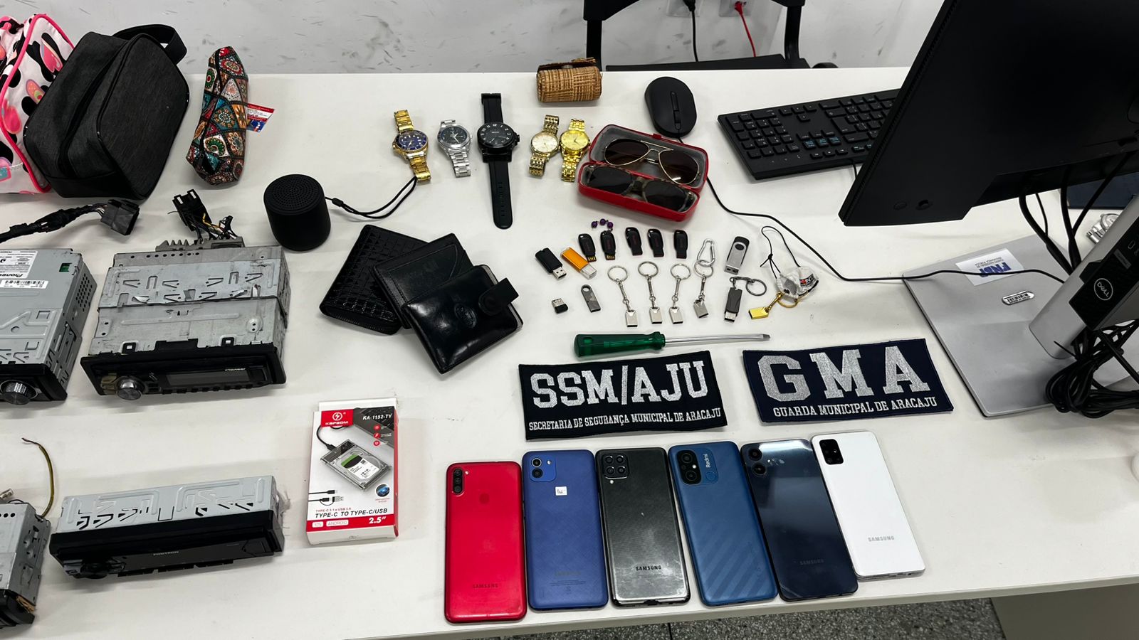 Ainda conforme a GMA, o suspeito também informou que os itens furtados se encontravam em sua residência. Após as informações, a equipe foi até o endereço indicado pelo homem e encontrou diversos itens, incluindo celulares, rádios de carros, cabos, carteiras, relógios, óculos escuros e outros.