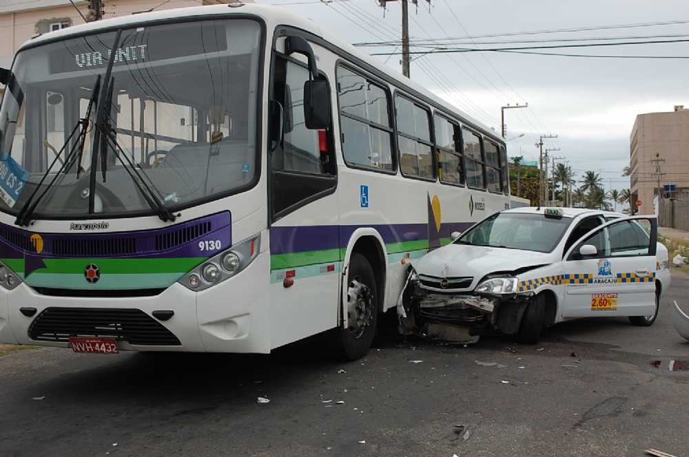 Táxi colide com ônibus em cruzamento na Coroa do Meio