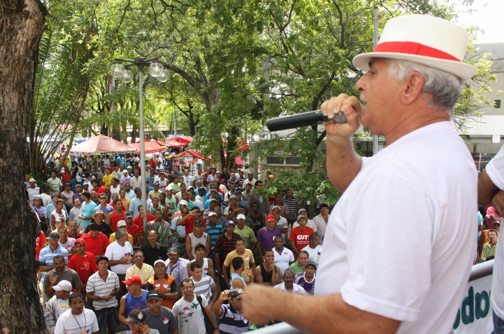 Rubens Marques, presidente da CUT durante o ato no Parque